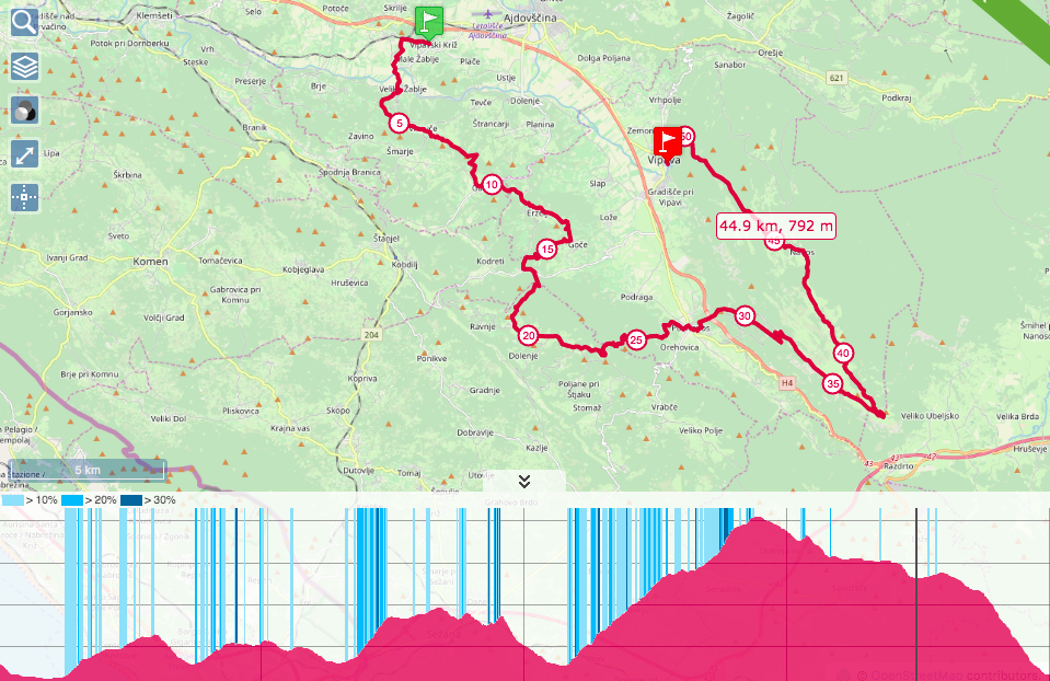 13:01 – Vipava – Alt. 102m – 52.8k / 2,493m D+ / 4h59m51s
