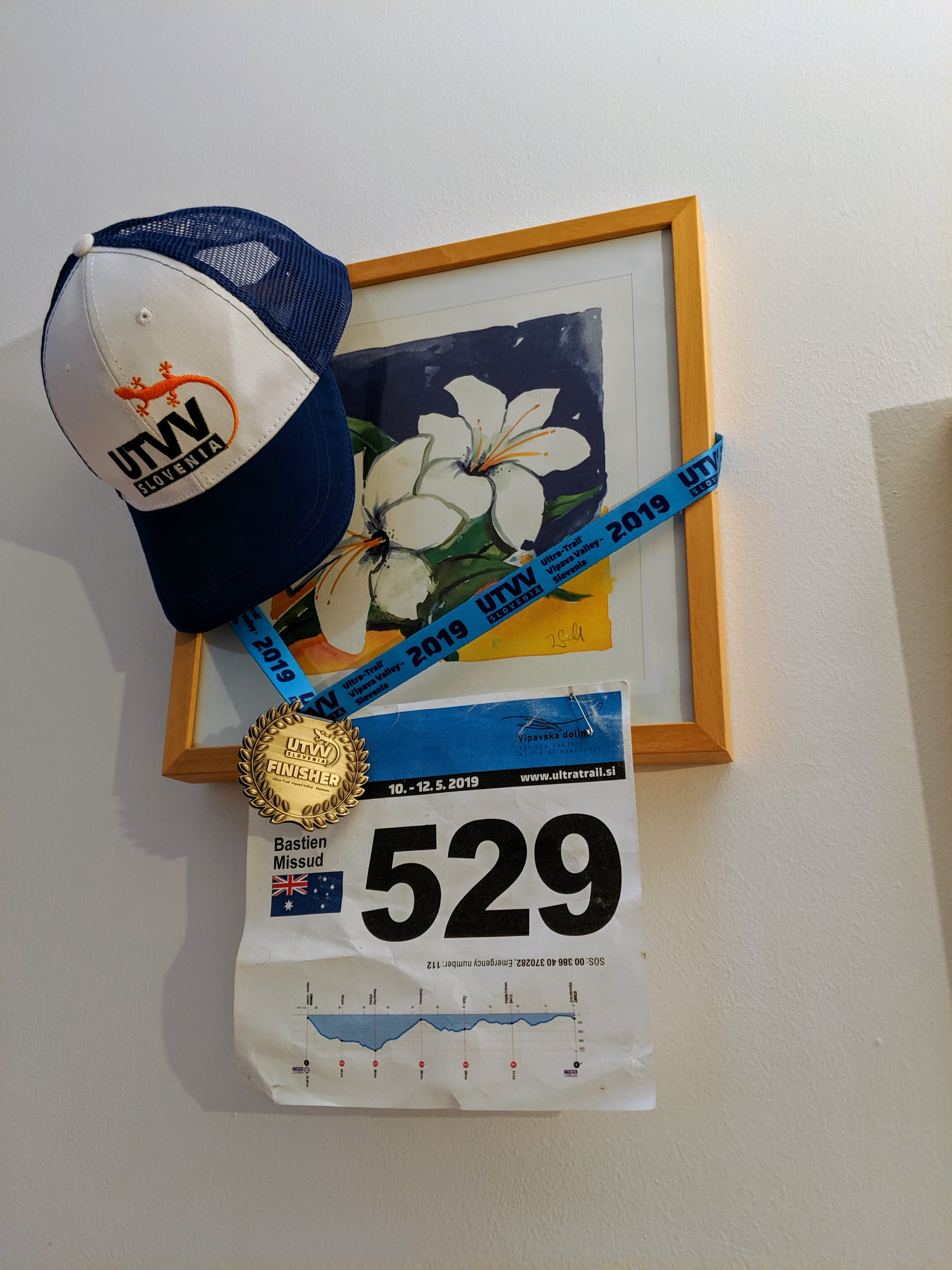 It’s the biggest bib I’ve had in a while, an elevation profile with aid stations displayed upside down – it was actually very helpful during the race though I think I prefer to write them down on my inner form arm and save a bit of space – smaller is better in this case.