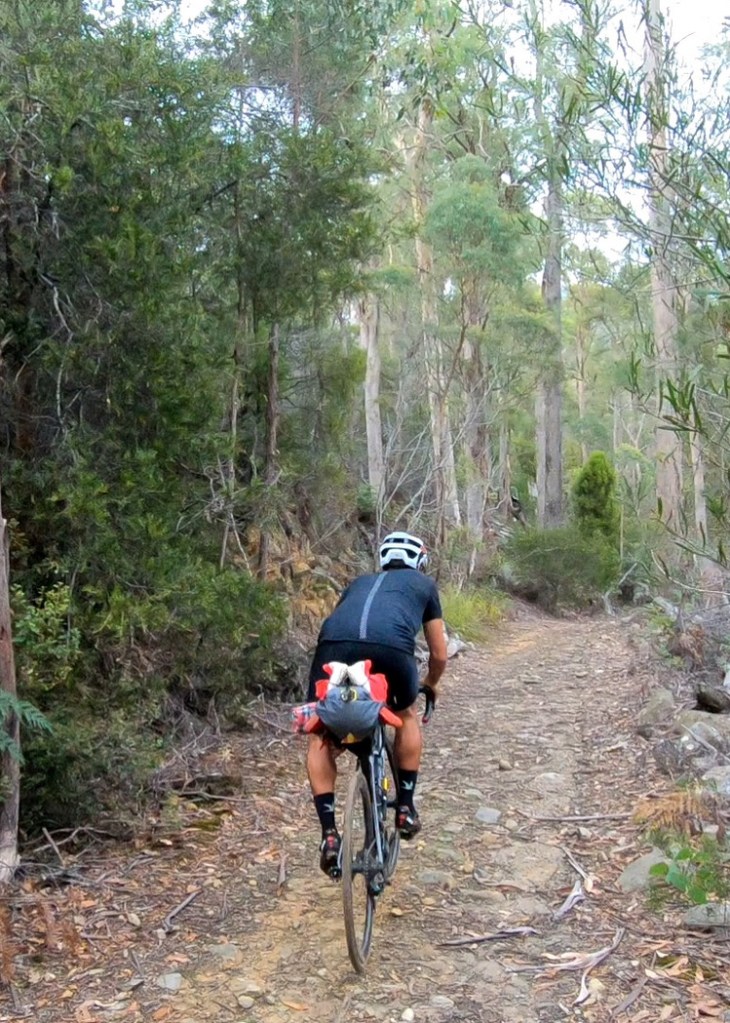 - Follow the Tasmanian Trail as much as possible but priority to riding instead of pushing bikes
