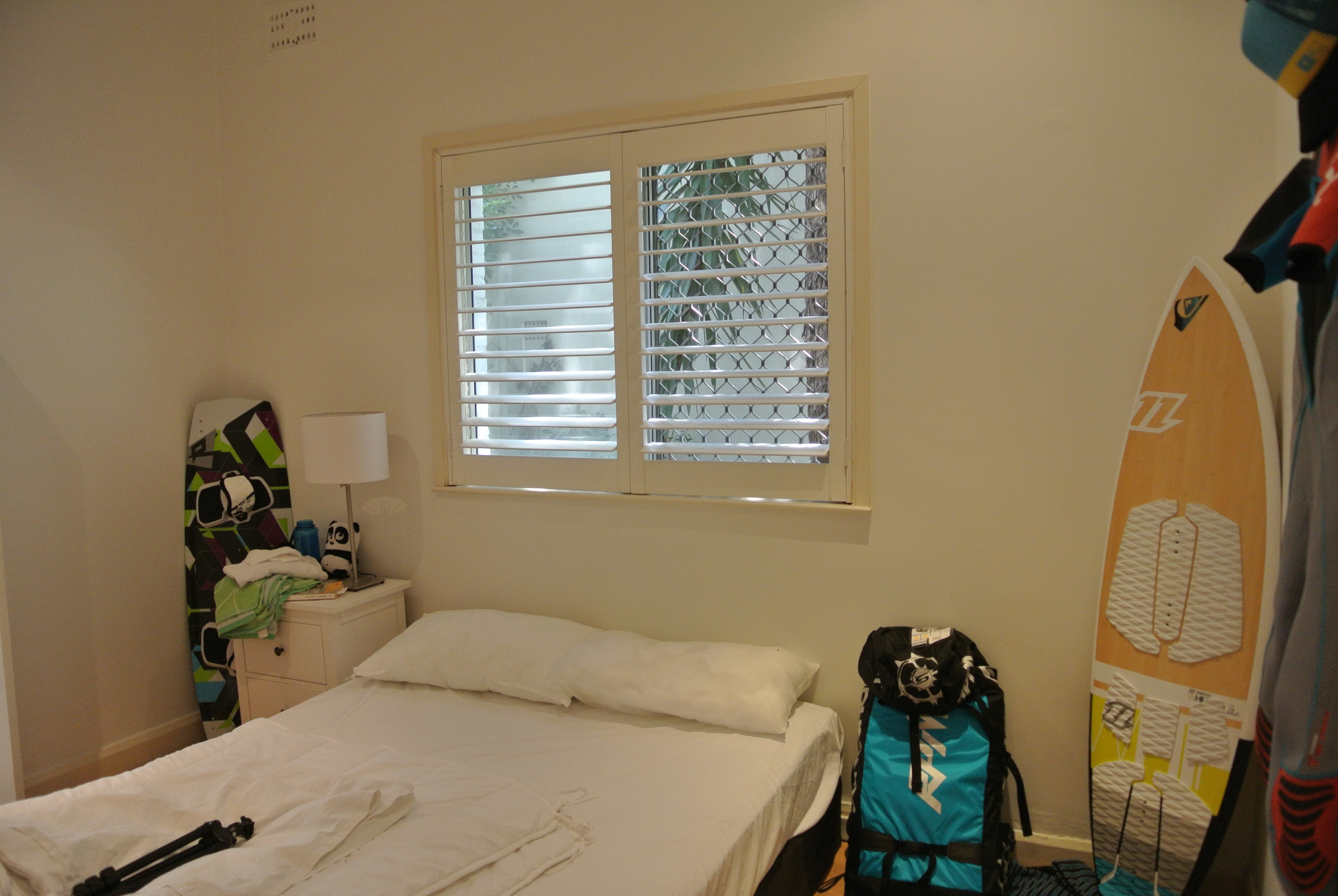 L’appartement que nous occupons se situe au rez de chaussée d’une maison divisée en 4 unités. Nous avons deux chambres avec salle de bain, séparées par un grand salon qui donne sur la terrasse, parfaite pour les barbecues et un jardin au poil pour faire sécher une aile de kite 😉